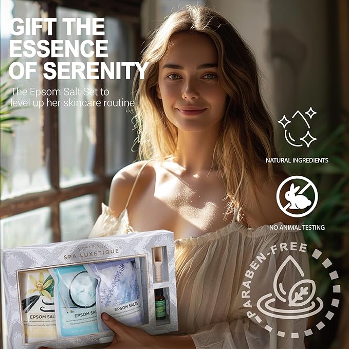 - Gifts Set: Our bath salts gift set offers fun to your home spa. Exquisite packaging and premium quality bath set is a perfect pamper gift for yourself or a loved one. Great for Valentine's Day, Christmas, Mother's Day, Anniversary, Birthday and more