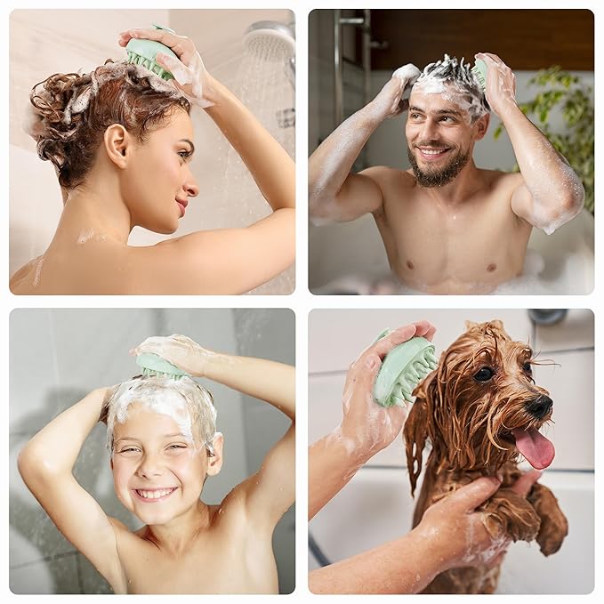 HEETA Scalp Scrubber Shampoo Brush, Scalp Massager Tool for Hair Growth, Soft Silicone Bristles for Dandruff Removal Wet Dry Use Women Men Kids Pet, Fit All Hair Types Care, Green