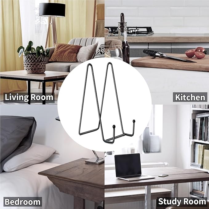 - 【Multi-functional】These plate holder stands are versatile and can be used for painted tiles, canvases, decorative plates, picture frames, postcards, cookbooks, musical instruments, and other artworks. They are suitable for kitchens, libraries, homes, offices, cafes, bookstores, showrooms, and more