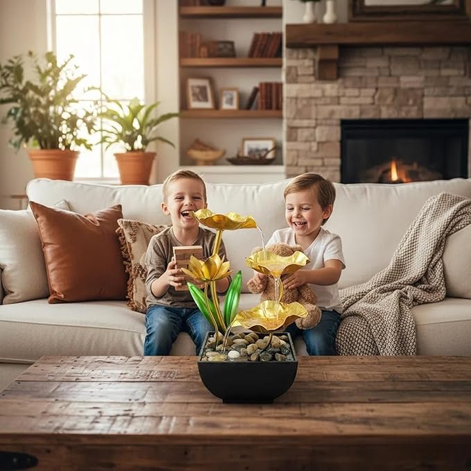 Gold Tabletop Water Fountain, Desktop Waterfall, Indoor Lotus Desktop Decorative Fountain, Home Bathroom Bedroom Decor.Thanksgiving Gift