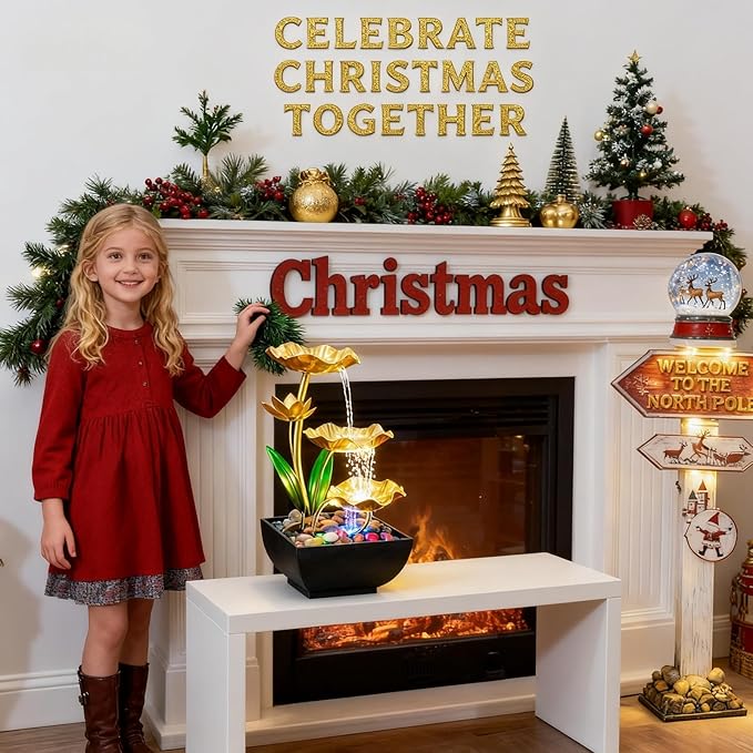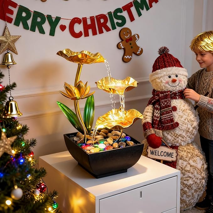 - Design: Features golden metal flowers and green leaves in a classic three-tier waterfall design, inspired by tranquil Zen lotus ponds.Fall decor