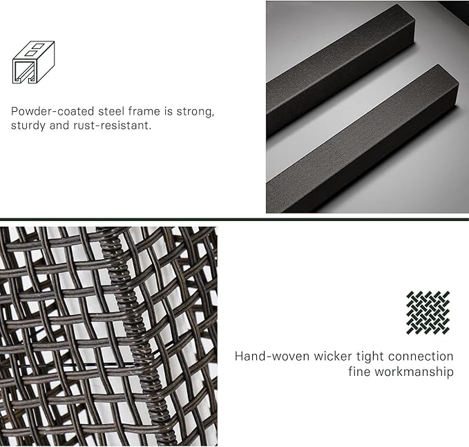 - PREMIUM MATERIAL: Powder-coated steel frame is strong, sturdy and rust-resistant. Premium wicker is non-toxic, all-weather, and fade-resistant. Contains a 3.2V, 1000mAh rechargeable battery and a premium solar panel