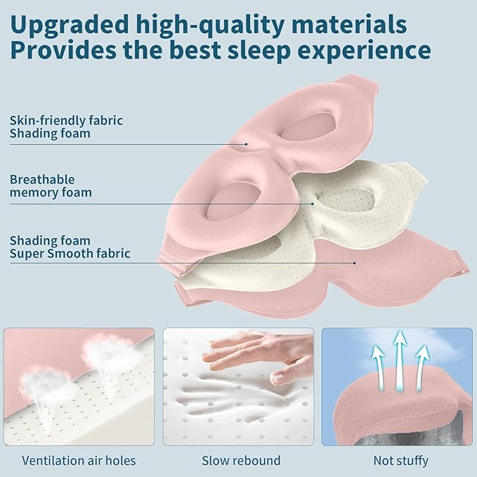 - Zero Pressure 3D Design: Eye mask based on ergonomics. The contours of the eyes area are deeper and your eyes can move freely. No pressure on eyes, protects your eye makeup and eyelashes.