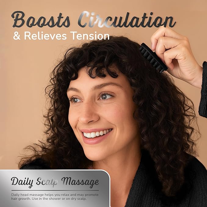 - Non-slip ergonomic handle for easy control — a balanced, palm-fitting grip stays steady in wet, soapy hands and works with either hand for a relaxed, consistent massage - your everyday scalp massage brush.