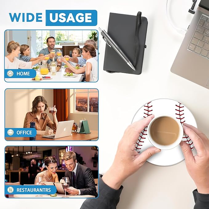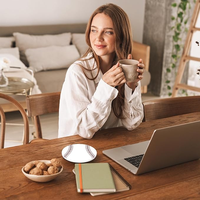 Baseball Round 4" Cup Coasters Set of 4, Absorbent Ceramic Stone Coasters with Cork Base, Ideal Gifts for Home Decor