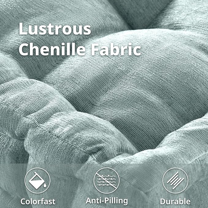 - High Quality Finish - The Azza Large Floor cushion is a sophisticated large sitting Floor pillow featuring a lustrous Chenille tufted finish that is adorned with a HAND-SEWN scalloped edge, providing a luxurious look and high quality feel