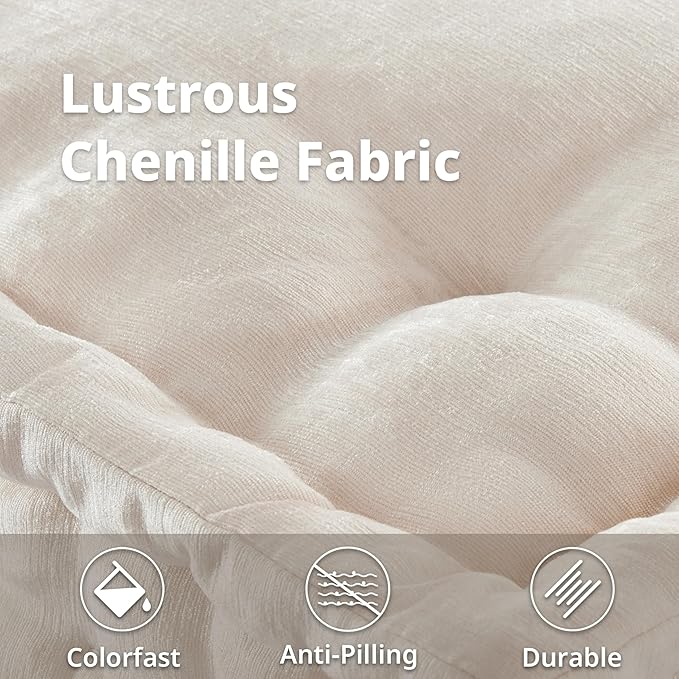 - High Quality Finish - The Azza Large Floor cushion is a sophisticated large sitting Floor pillow featuring a lustrous Chenille tufted finish that is adorned with a HAND-SEWN scalloped edge, providing a luxurious look and high quality feel