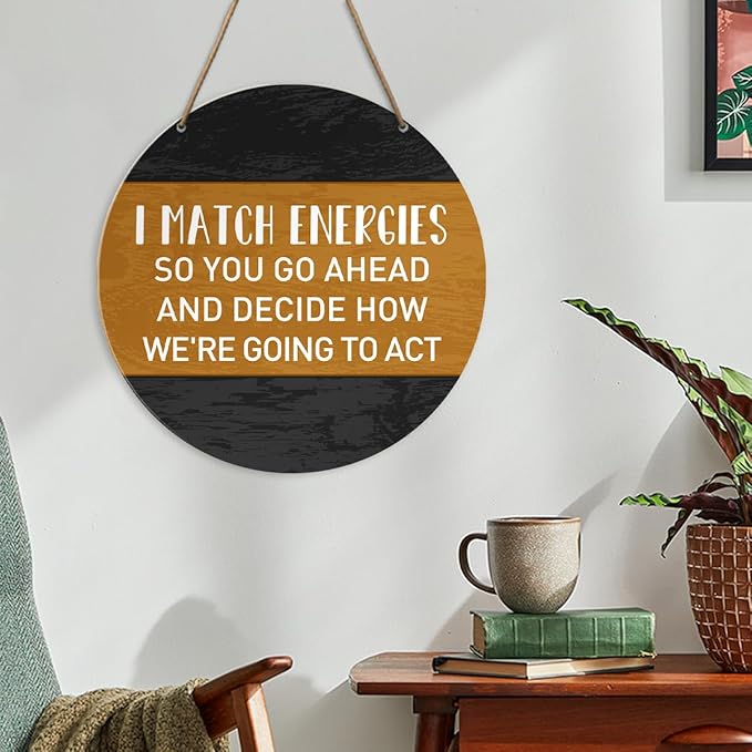 Positive Energy Wall Decor, Inspirational Round Wood Hanging Sign Decor, Motivational Decorations for Home Office Classroom, Positive Gifts for Women Men, I Match Energies