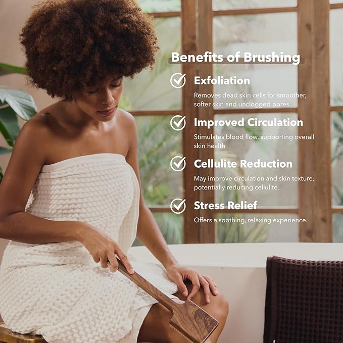 - ๐ง ELIMINATE DRY SKIN: Easily remove dead skin and encourage skin renewal with this exfoliating brush. Use in upward strokes to lift dirt and dry skin cells, revealing smooth, refreshed skin. It also doubles as a cellulite and lymphatic scrub, helping to reduce the look of cellulite and bumps for a smoother appearance.