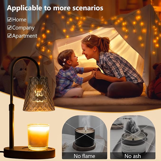 - 【Adjustable Brightness & Height】 Set your light just right. This Candle Warmer Lamp lets you dim and raise for bedside, desk, or living room comfort. Works with both small and large candles.