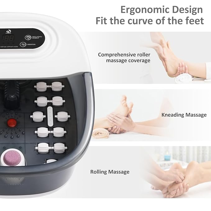 - 【Infrared Light & Removable 22 Massage Rollers】MoodRelish Pedicure foot soak tub is with Infrared light. Infrared light can promote blood circulation & metabolism, sterilize your feet & improve body's immunity. This MoodRelish foot tub has ergonomic designed shiatsu massage rollers(not motorized) to stimulate right acupuncture points which are firmly related to human body organs. This can improve organs' performance & help relieve tension, stress & fatigue.