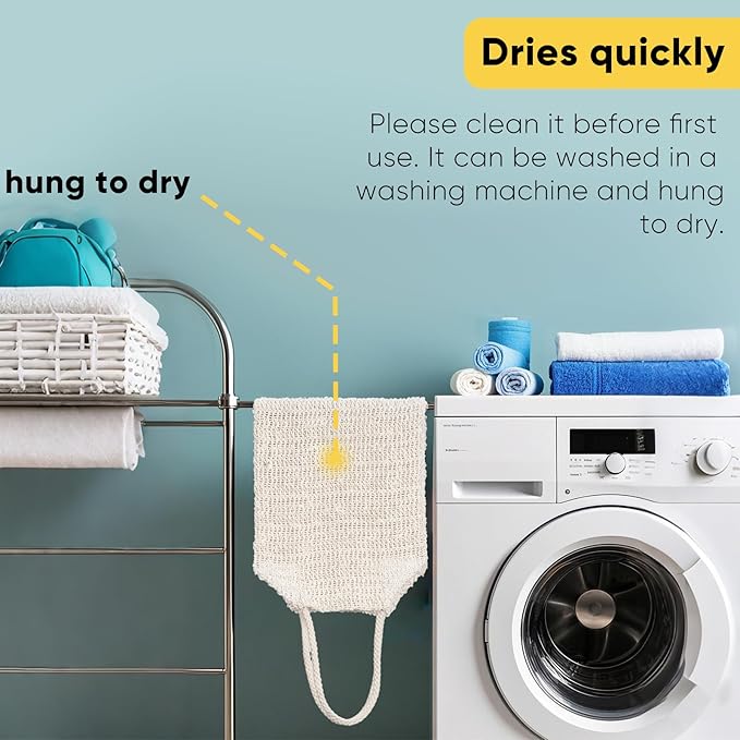 - Exfoliating body scrubber:Made from premium natural sisal fibers, our body scrubber softens when wet, ensuring a gentle yet deep cleansing experience that helps remove dead skin cells and unclog pores.