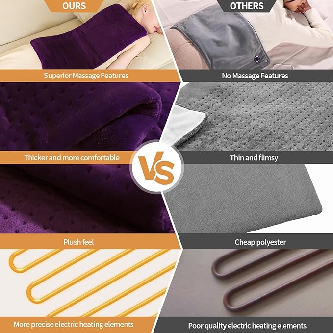 - XXL size heating pad: 17” x 33” heating pads for back pain relief is made of soft velvet material, feels comfortable on the skin and provide soothing warmth whenever you need it. Large heating pad built-in heating wire technology with denser heating points ensure that every corner of the blanket is heated quickly and evenly. You can relax while enjoying the gentle heat from the pad.
