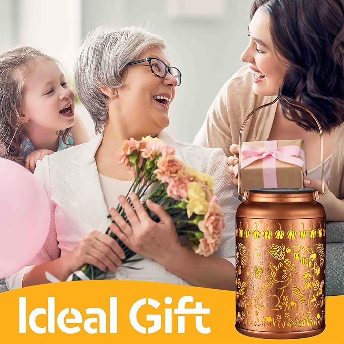 - Graceful Decorative Design:The retro appearance, with gold copper color and hollow out metal veneer, the solar outdoor lanterns casts bright and warm light in darkness, accompanied by gorgeous and graceful hummingbird patterns, adding a beautiful atmosphere to the surrounding environment.