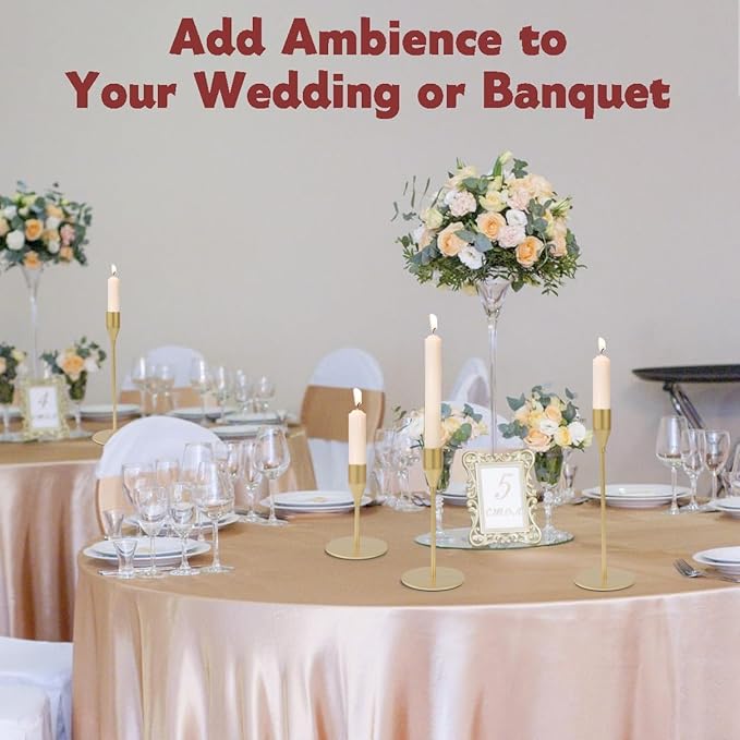 - [Wide Application] You can place these beautiful gold candle holders on your dining table, mantelpiece, or anywhere you like to decorate your home, fireplace, living room, hotel, garden, shop, restaurant, café, bar, etc. They are also perfect as decorations or gifts for weddings, banquets, anniversaries, housewarming parties, birthday parties, Christmas, Thanksgiving, New Year, etc.