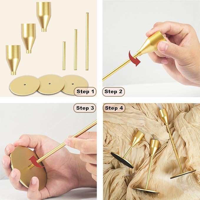 - [Easy To Assemble] These decorative candelabras are very easy to assemble, just connect the candle cup with the rod and then screw it into the base to complete the installation; And it can be quickly disassembled when not in use, easy to store, and does not take up too much space.