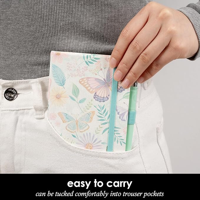 Aesthetic Small Journal Notebook, 3 Pack Mini Pocket Notebook with Pen, (Butterfly Garden) 3.7" x 5.7", 100GSM Lined Paper, Hardcover Small Notepad for Kids/Girls/Women Writing Note Taking