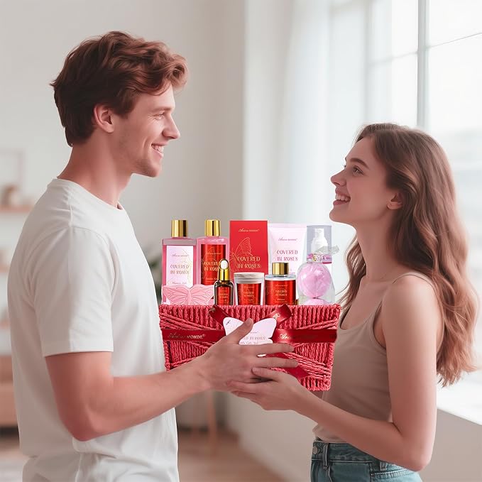 - DELUXE 15-PIECE SPA SET ♥This Spa kit for women gift set has everything she needs for ultimate relaxation! It is the perfect Birthday Gifts for Women! It includes shower gel, bubble bath,hand & body cream, body mist, body oil, 2 large bath bombs, bath salts, scented candle, diffuser with sticks, soap, pumice stone, and a luxurious waffle slippers. Packed in a handcrafted basket with stunning wrapping, it also comes with a personalized gift note card for your special message