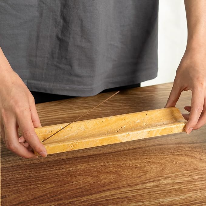 Koville Travertine Incense Holder, Incense Holder for Sticks, Long Incense Sticks Holder Ash Catcher for Meditation Yoga SPA, Natural Stone Incense Burner, Home Table Decor(Yellow)
