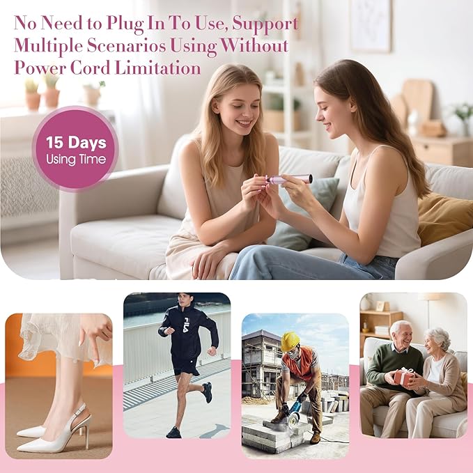 - High Capacity Battery& Portable: Rechargeable foot file callus remover no more dead batteries mid-pedicure! Our 2000mAh battery lasts 4+ hours and survives 60-day standby.Type-C fast charge, supports simultaneous charging/use, without being restricted by wires. Electric foot file runs wireless making it travel friendly and carry.