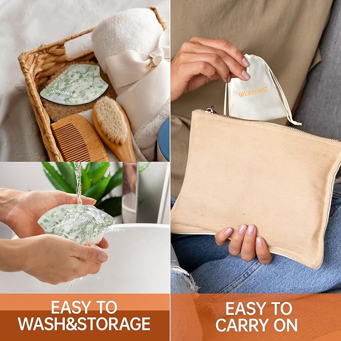 - 【100% Premium Ice-Cool Jade Stone】Made from hand-polished natural cooling jade stone, this tool is perfect for tackling morning puffiness and sun-stressed skin, while enhancing radiance through natural cooling. It promotes skin radiance, tightens pores, and preps skin for flawless makeup application.