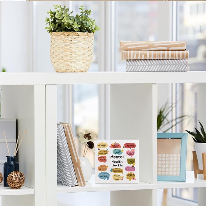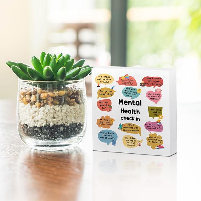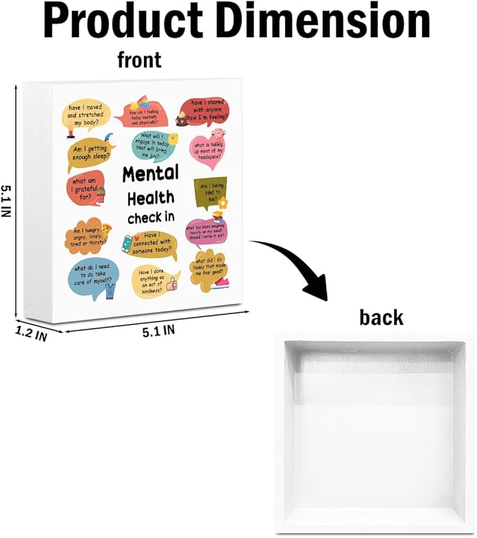 Therapy Office Decor Wooden Box Sign, Mental Health Check In Decorations,Mental Health Gifts for Psychologist Counselor, Rustic Farmhouse Home Office Classroom Desk Table Decor Wood Block Plaque