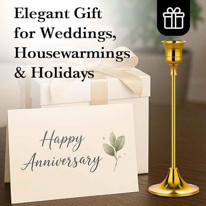 - STURDY METAL BUILD WITH BRUSHED FINISH: Crafted from durable, rust-resistant metal with a smooth brushed gold finish, these gold taper candle holders are built to last. The weighted base ensures each holder stays stable, keeping your candles upright and secure.