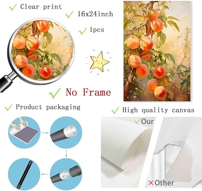 Mostemauo Peach Wall Art Still Life Fruit Painting Summer Wall Art Fruit Market Print Vintage Painting Abstract Botanical Picture Aesthetic Modern Kitchen Living Room Decor 16x24inch No Frame