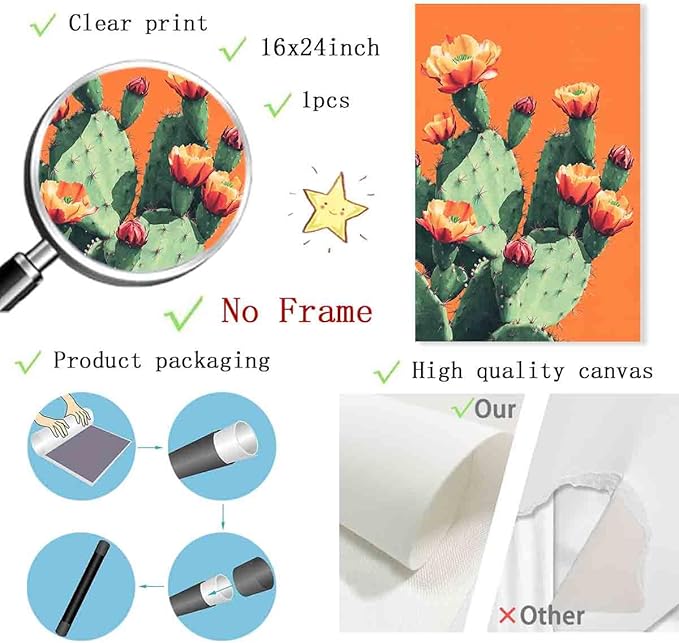Vintage Cactus Posters Tropical Plants Wall Art Pink Floral Painting Floral Aesthetic Prints Western Desert Print Desert Botanical Prints orange and green flower wall art room decor 16x24inch no frame