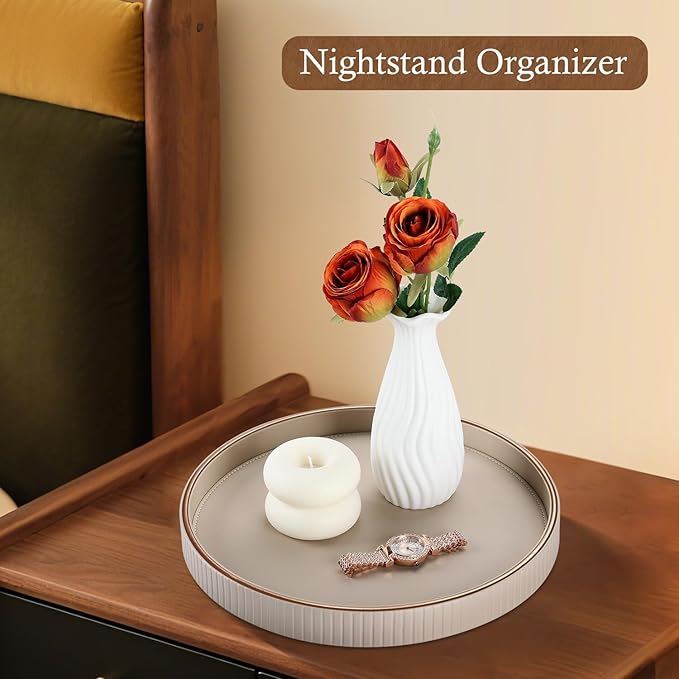 - 【Functional Size for Everyday Use】 Measuring 11.8" in diameter and 1.2" in height, this decorative tray neatly holds jewelry, perfumes, skincare, keys, diffusers, vases, and more—seamlessly blending organization with elegant tabletop style.