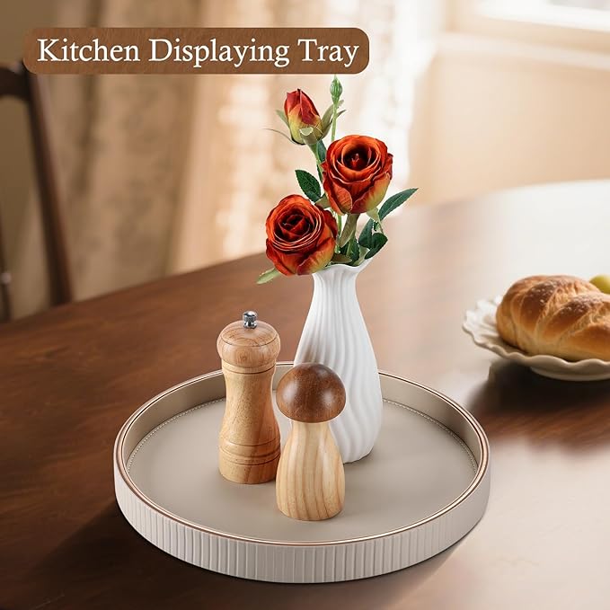 - 【Modern Leather Elegance】 Hand-crafted from premium PU leather with a soft-touch surface, this round decorative tray from GORESE Striped Series brings a refined accent to your home and cleans effortlessly with a simple wipe.