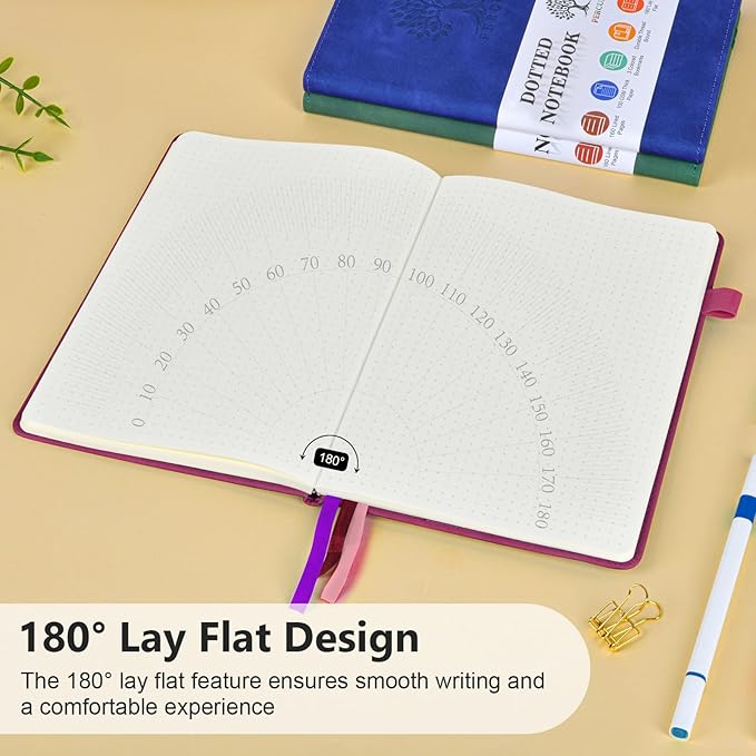 - 【160 PAGES PREMIUM DOTTED NOTEBOOK】:PERCUN A5 dotted journal features 160 pages of smooth, acid-free dotted grid paper (5.9” x 8.5”), ideal for bullet journaling, note-taking, sketching, and planning. The thick 100 GSM paper resists ghosting and bleed-through, ensuring your ideas stay crisp with pens, markers, or fountain inks.