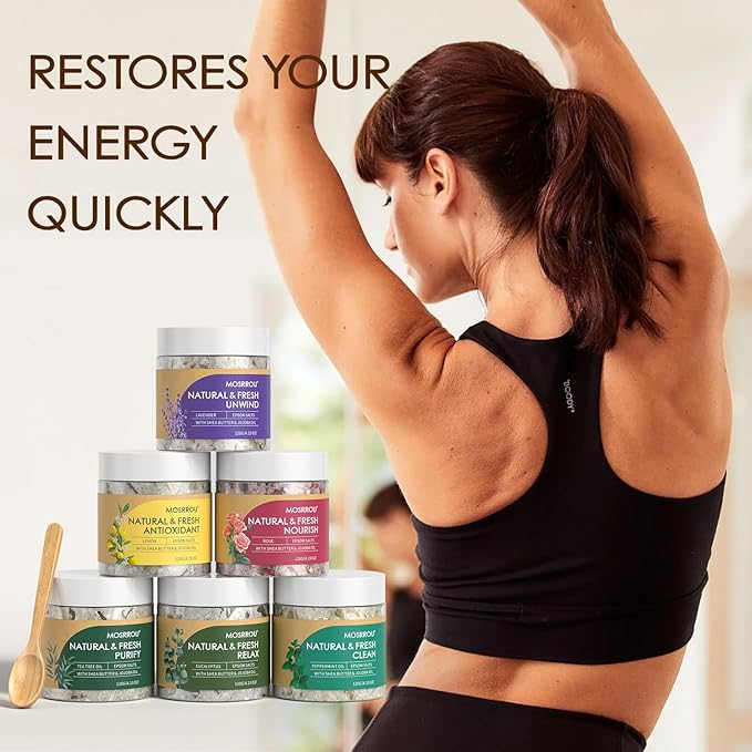 - LUXURIOUS 6-PIECE BATH SALTS SET: There's nothing like a warm bath to melt away stress. Immerse yourself in soothing warm water infused with the natural scent of flowers and rejuvenate after a busy day. Our bath salts are expertly blended with natural plant essential oils and epsom salts to provide a truly restorative soak that relaxes both body and mind.