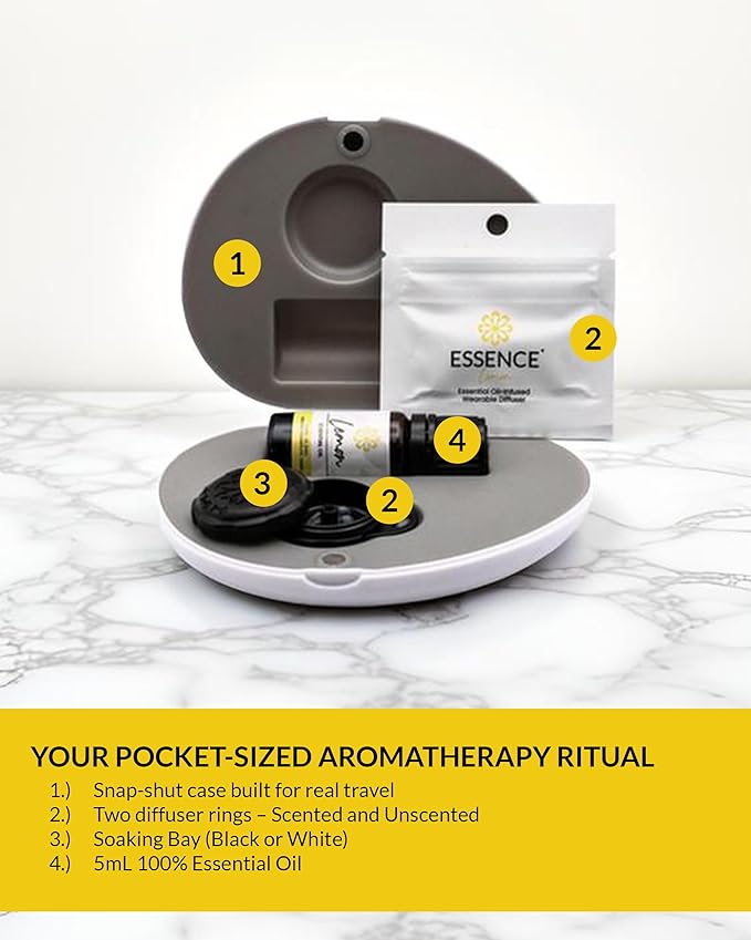 Essence Pearl Travel Case - Wearable Aromatherapy Kit with Nasal Diffuser Rings, Soaking Bay, and 5mL Essential Oil – Portable Wellness Gift Set for On?The?Go Self Care