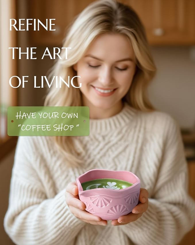 - Elegant Glazed Interior:Tired of hard-to-clean tea ware? We understand. The inner wall of this matcha bowl is coated with a specially formulated smooth glaze that is dense and resistant to tea stain buildup. A quick rinse restores its pristine finish. Made with non-toxic, lead-free glaze, it ensures every sip of matcha is pure, safe, and free from unwanted odors or residue.