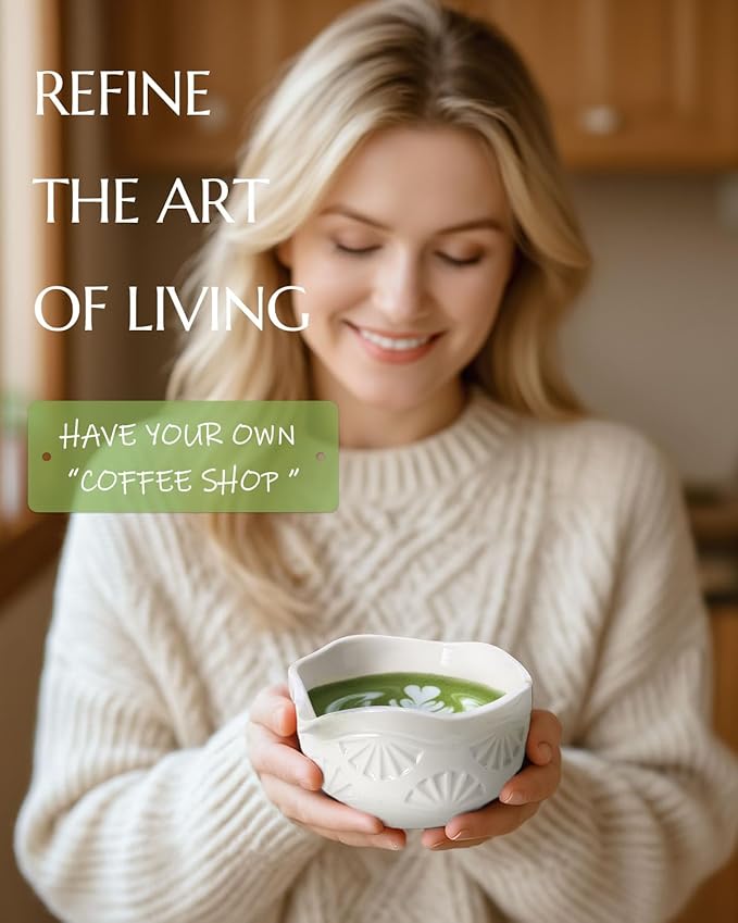 - Elegant Glazed Interior:Tired of hard-to-clean tea ware? We understand. The inner wall of this matcha bowl is coated with a specially formulated smooth glaze that is dense and resistant to tea stain buildup. A quick rinse restores its pristine finish. Made with non-toxic, lead-free glaze, it ensures every sip of matcha is pure, safe, and free from unwanted odors or residue.