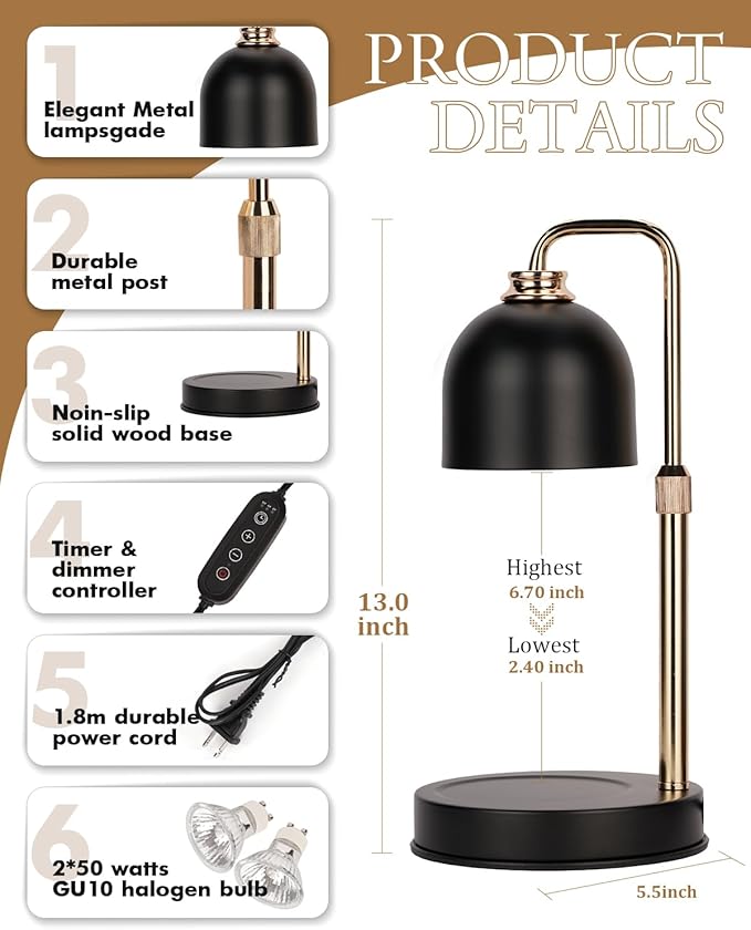 - Flameless candle heater lamp: Experience even wax melting without smoke or soot that protects indoor air quality and prevents wax drips from staining furniture; perfect for homes with children or pets needing a safer environment