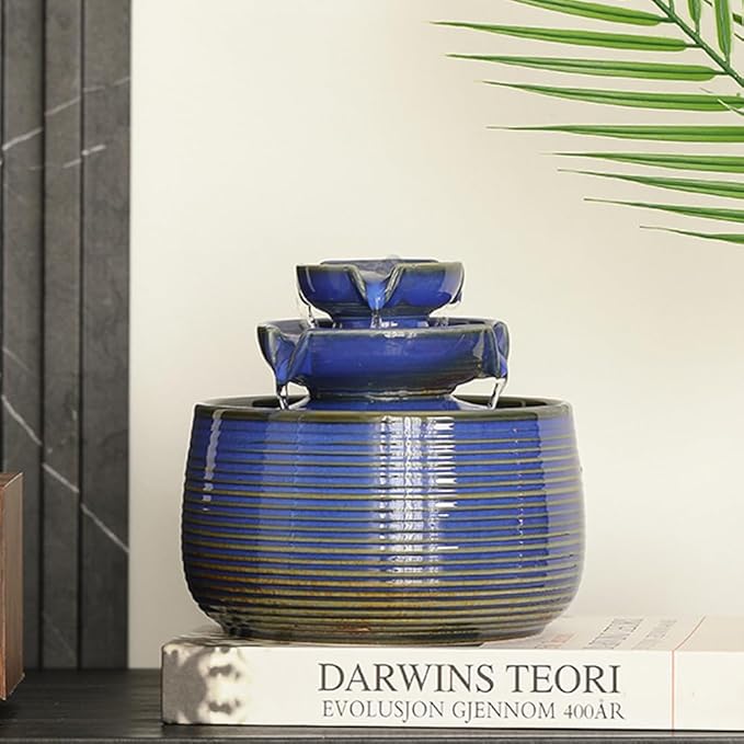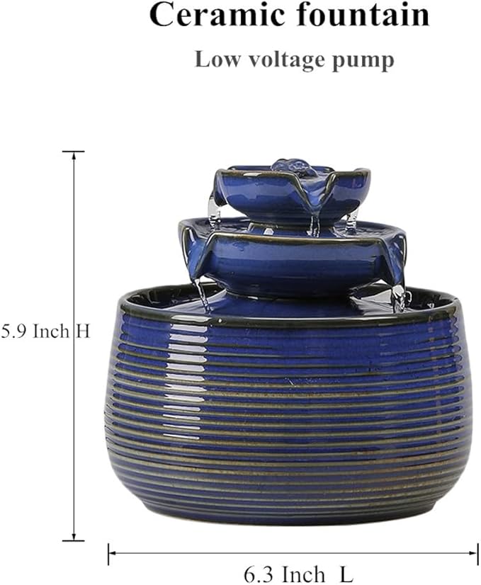Outdoor and Indoor Water Feature Fountain Waterfall Tabletop Desktop mini Ceramic Garden Fountain (Blue A171)