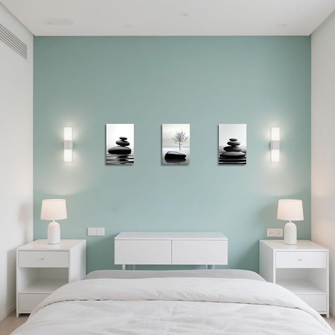 CCWORKERRY 3PCS Zen Stones Canvas Wall Art Black and White Zen Stone Painting Calming Meditation Wall Decor for Yoga Studio Office Spa Bathroom (white,11W x14L x3)