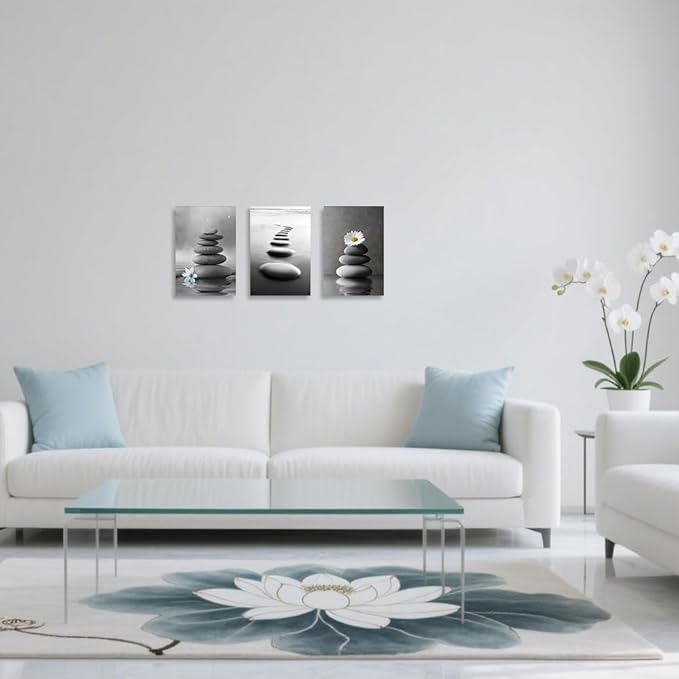 - Zen Wall Decorations - 3 Pieces gray stone with flower pictures suitable for classroom, living rooms, library, dining rooms, bedrooms, bathrooms, offices, gym, toilets, stairs, corridors, studios, guest rooms, and kitchens.