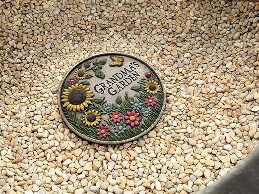 - THOUGHTFUL GIFT: Makes a heartwarming present for grandmothers, featuring "Grandma's Garden" text surrounded by cheerful floral artwork Versatile Use as Stepping Stone or Wall Art: Features pre-installed hanging hardware on the back, allowing this piece to function as a stepping stone for pathways or a wall-mounted plaque to enhance indoor or outdoor décor.
