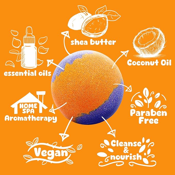 - Natural & Gentle Formula: Made with organic plant-based essential oils and deep-sea mineral salts, these non-toxic, residue-free bath bombs moisturize sensitive skin and are safe for kids—no mess, no stains, just soft, bubbly fun.