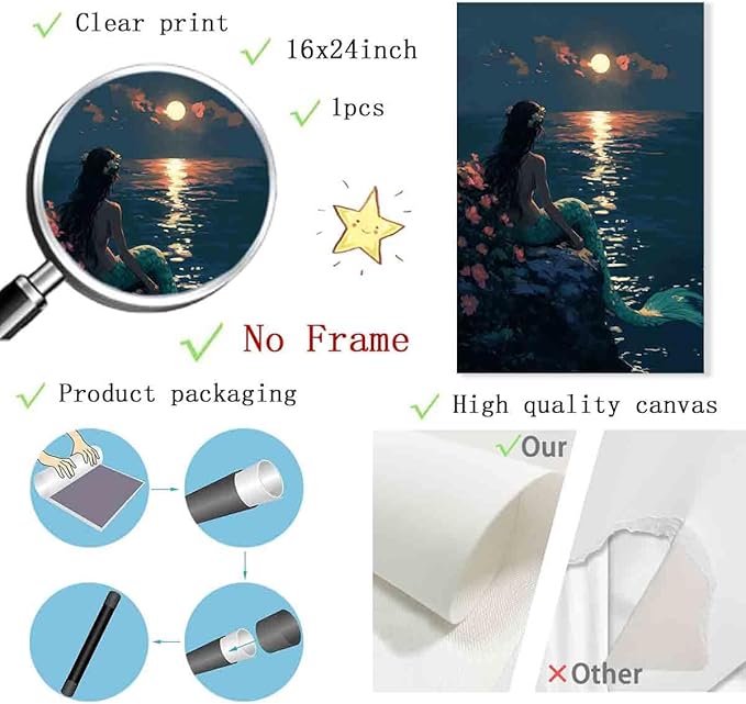- 3. Packaging: Use PVC pipe packaging, will not wrinkle, rest assured to buy! (Note: the canvas color may be slightly different depending on the monitor, please accurately measure the wall and choose the appropriate size, the scene picture is not real, for reference only.)