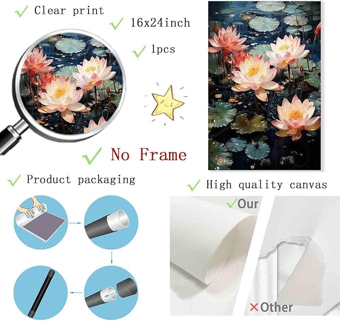 - 1. Size: The size of this canvas painting is 16x24inch, excluding the frame, with 0.5cm white edge, in order to facilitate your installation of the frame. You can also do DIY according to your favorite style and enjoy DIY fun.