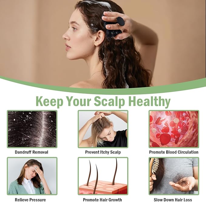 - Deep Cleansing & Balanced Oil: Made with soft silicone bristles, this easy-to-use scalp scrubber gently washes away dirt, excess oil, and flakes.It’s perfect if you have dandruff, an oily scalp, or sensitive skin—and works safely on all hair types. Refresh your scalp between washes and get your hair cleaner than ever.