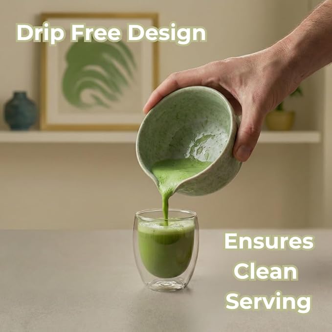 • CERAMIC BOWL AND WIDE DESIGN: The matcha bowl is crafted from high-quality ceramic with a wide opening to allow sufficient space for the whisking motion without splashing. The glazed finish is designed to be durable and heat-retentive for serving.