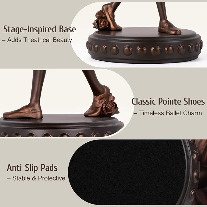 Ballerina Figurines, Ballerina Dancer Statues Resin Sculpture Vintage Home Decor, Ballet Dance Girl Ornament for Shelves Home Office Decor (Bronze)
