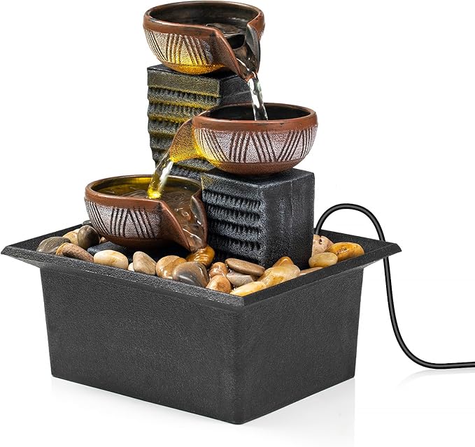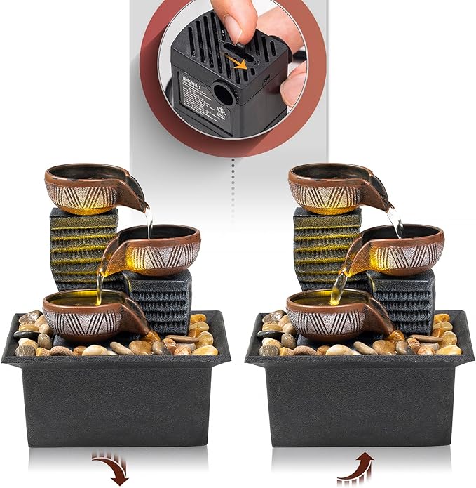 - Indoor decorative fountain: 3-Tier ingenious design creates a soothing water flow, accompanying you to sleep or bringing you tranquility and relaxation. It can also help increase the humidity of the surrounding air, making it an ideal choice for adding a touch of Zen and decoration to anywhere.