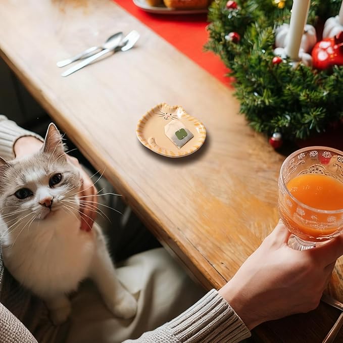 - Size, Material, and Advantages: the cat tea bag coaster measures approximately 10 cm in diameter, making it a compact and practical size; Made from ceramic, it is fired at high temperatures, resulting in a smooth, lustrous glaze; Its advantages lie in its realistic, three-dimensional shape, combining practicality with decorative appeal; The ceramic material is easy to clean and maintain, and its durability makes it suitable for everyday use