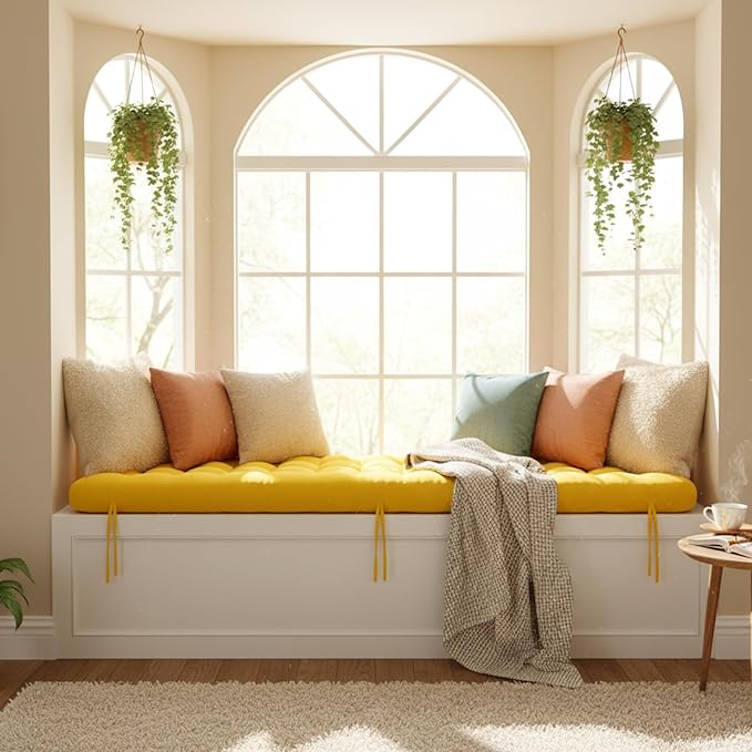 Long Floor Cushion Large Floor Cushion with Brushed Cotton 74.8 x 27.5 x 3.15 in Jumbo Lounger Pillow for Outdoor Indoor Bay Window Meditation Yoga Reading Sleeping(Yellow)